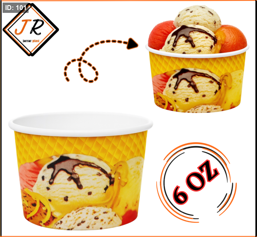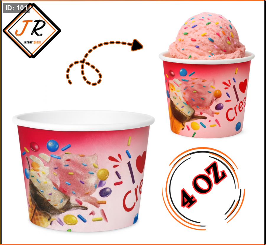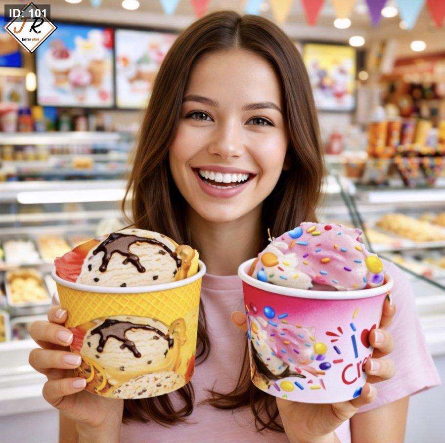 كاسات مصنوعة من كرتون صحي آمن للغذاء، مناسبة لتقديم البوظة والآيس كريم والحلويات الباردة بجودة عالية ولمسة عملية في التقديم 50 علبة بالربطة