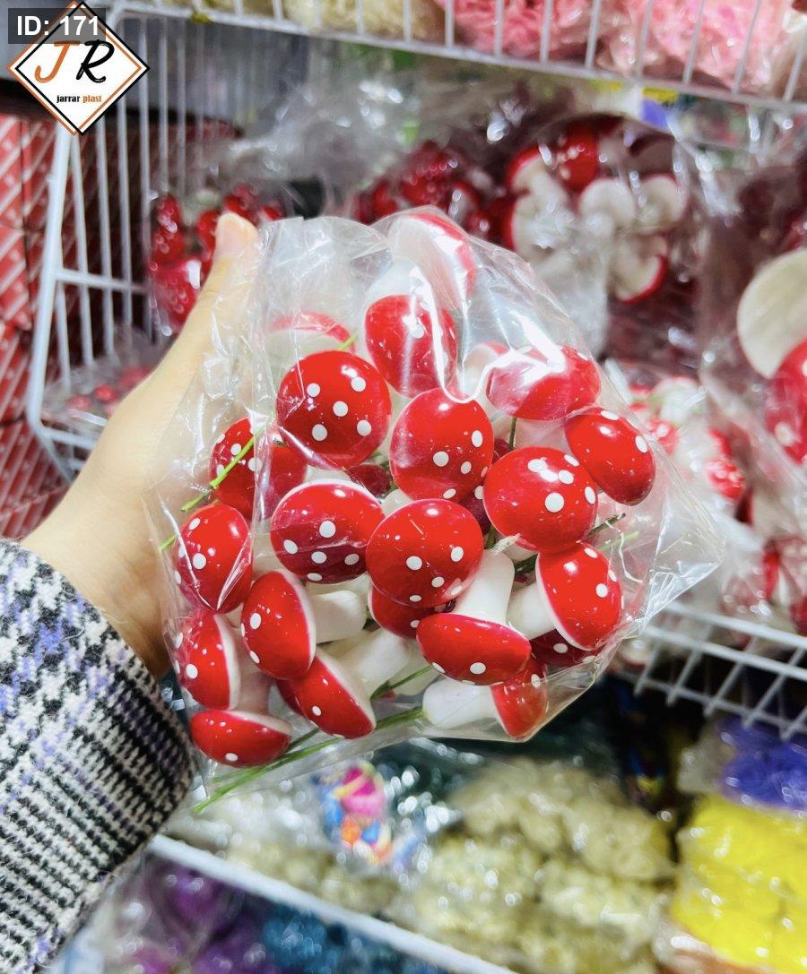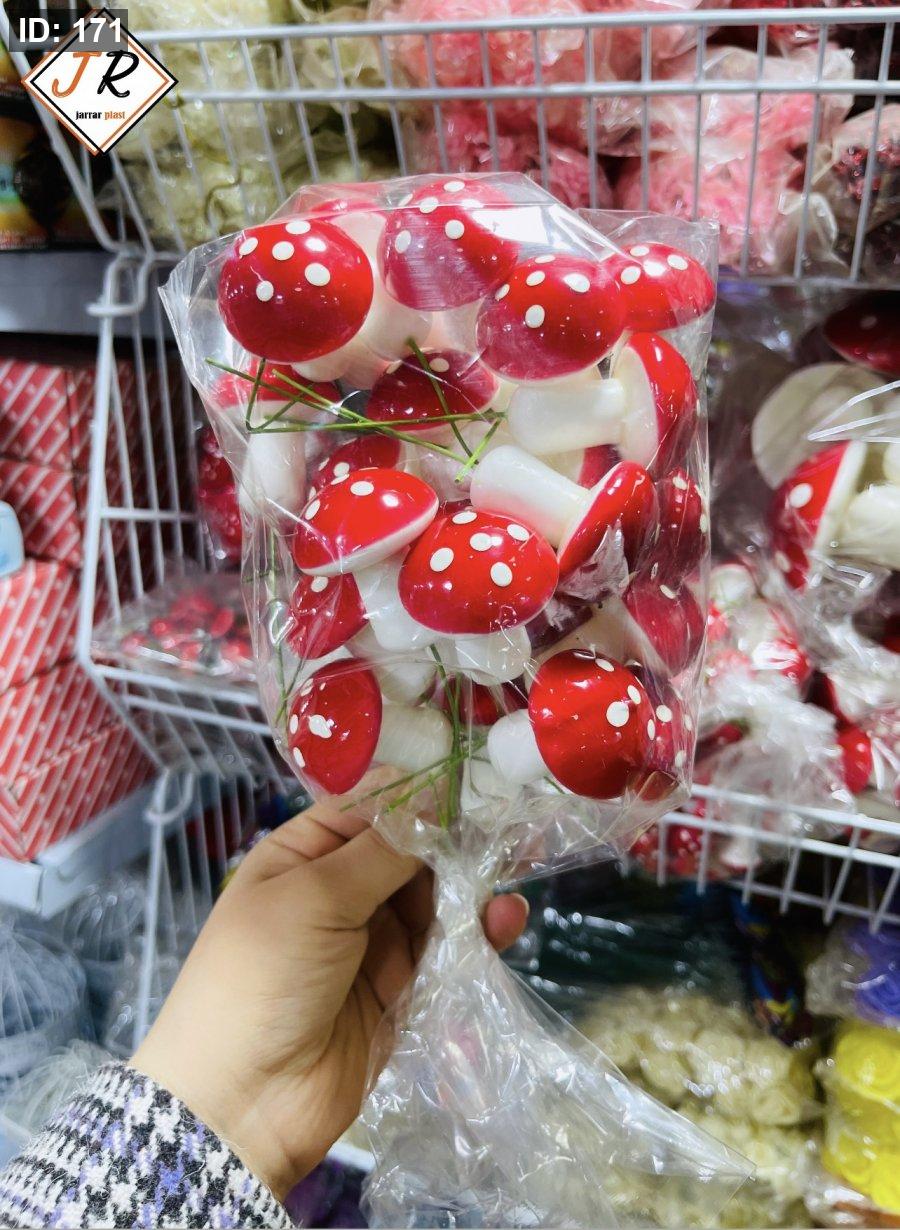 زينة فطر صناعية بتصميم أنيق ولون جذابة، تضيف لمسة مرحة وطبيعية للديكور(الصغير50حبة، الوسط 20 حبة، الكبير بنباع بالحبة)