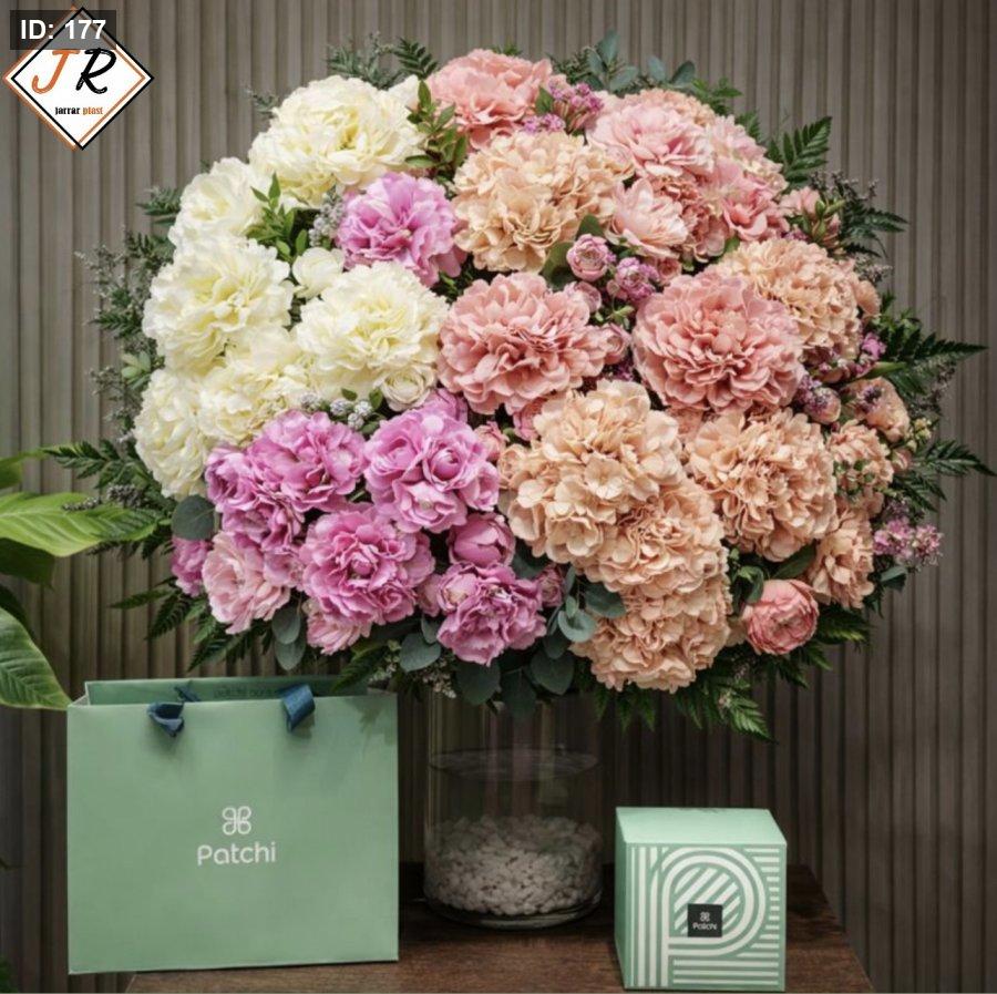 ضمة ورد أنيقة تجمع بين الوردي الغامق، الوردي الفاتح، والأبيض الكريمي، لتمنح أي مساحة لمسة دافئة تدوم طويلاً