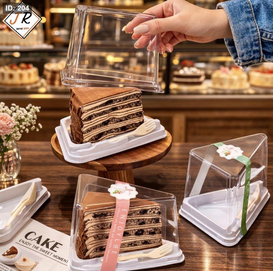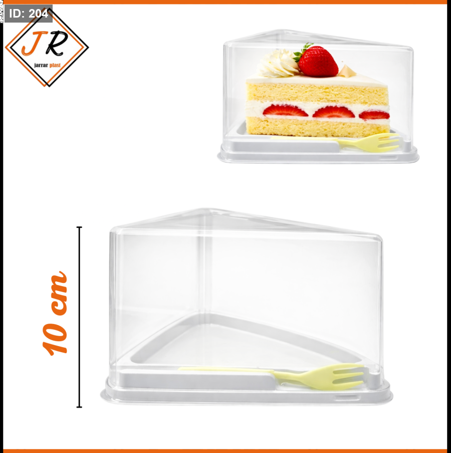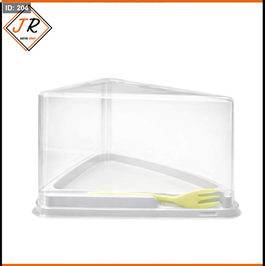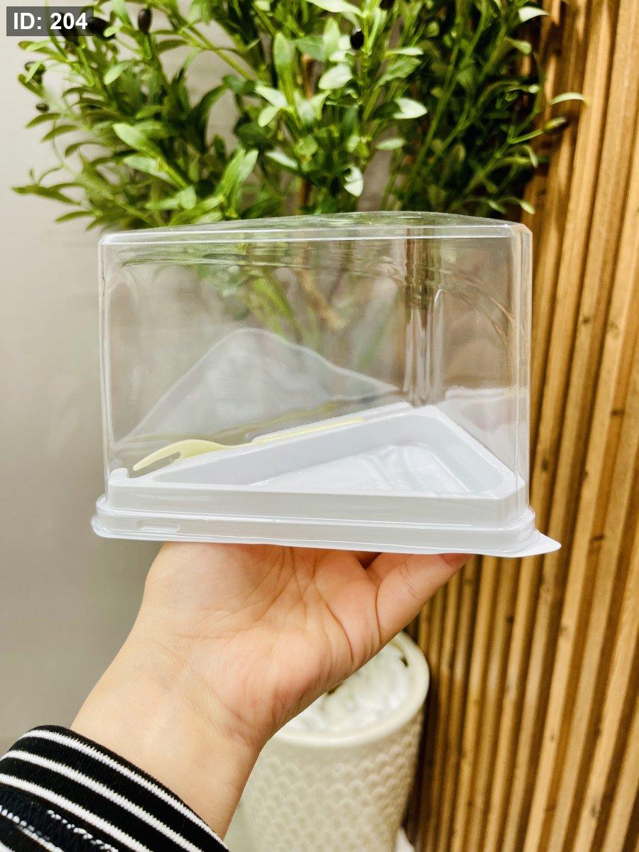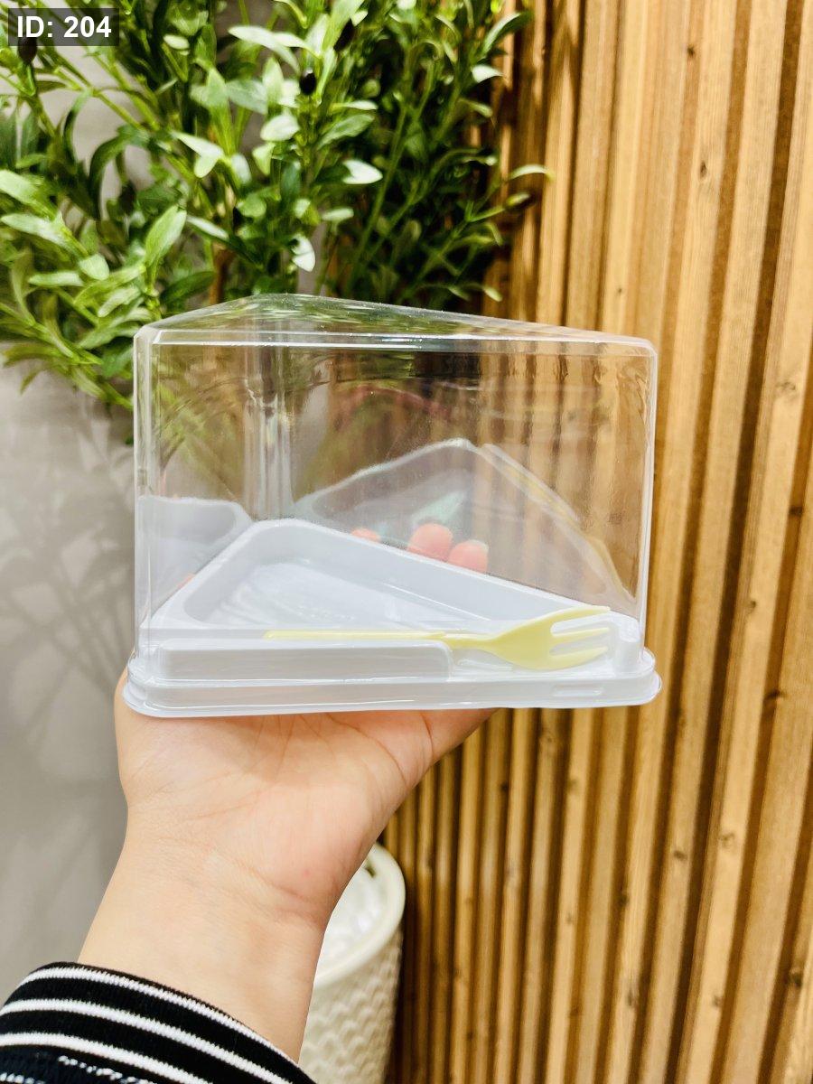 علبة كيك مثلث بتصميم أنيق وعملي، مثالية لتقديم قطعة الكيك بشكل مرتب وآمن،شوكة مرفقة لسهولة التقديم