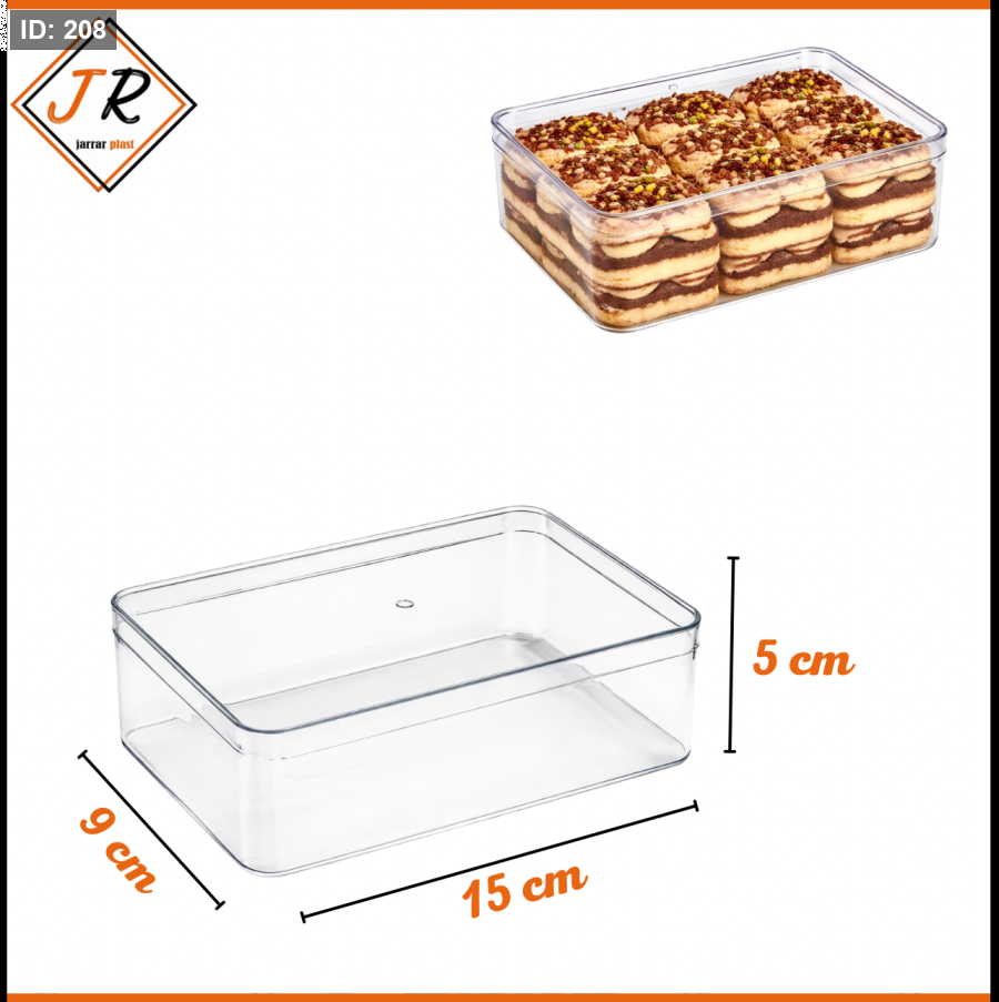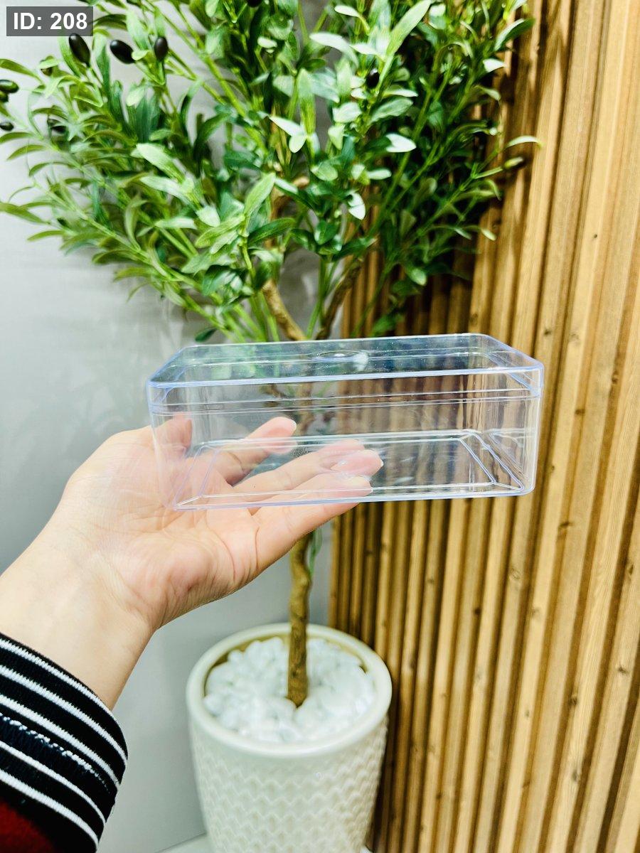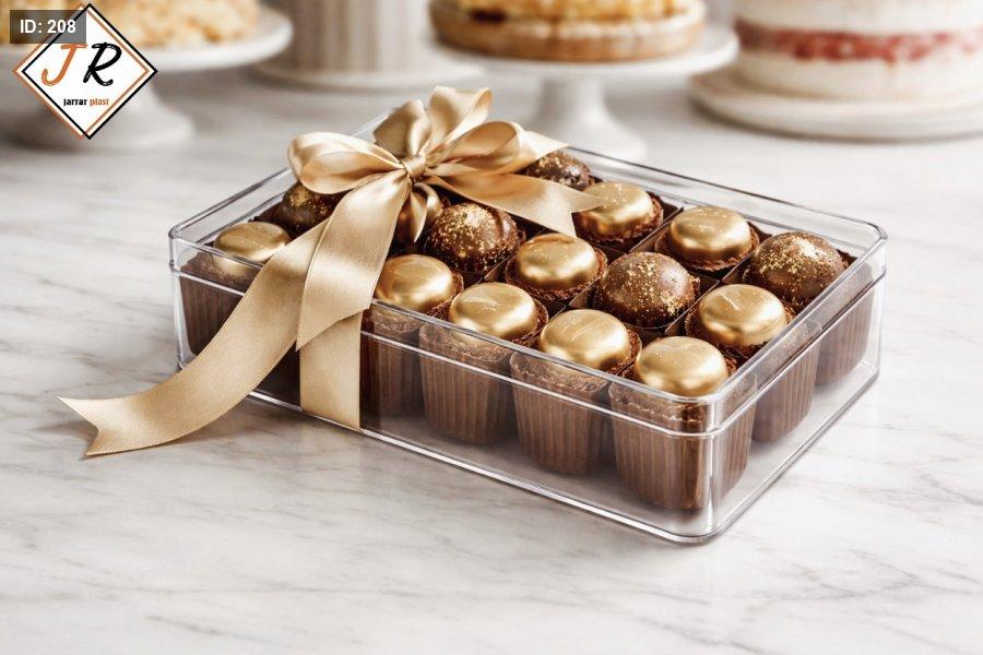 علبة أكريليك مستطيلة كبيرة بتصميم شفاف وأنيق، مثالية لتقديم الحلويات بشكل جذاب ومرتب مع لمسة فخامة واضحة