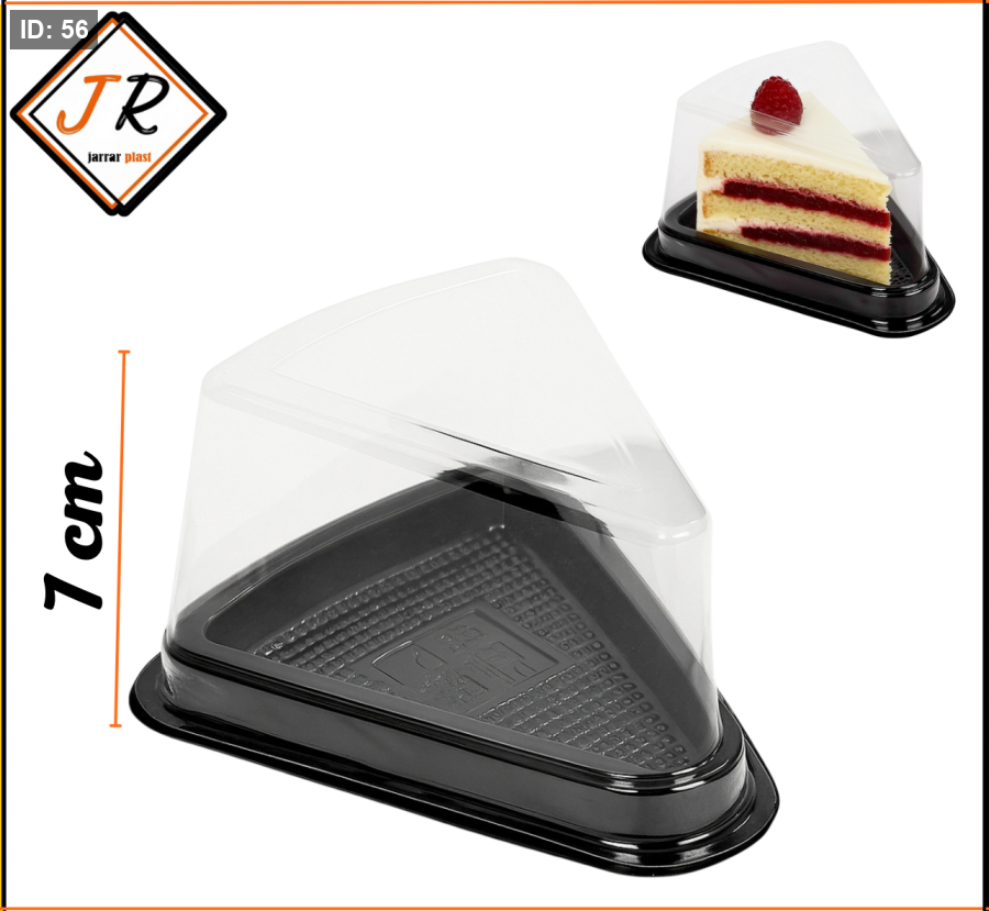 هذه عبوة بلاستيكية مثلثة لقطعة كيك بقاعدة بلاستيكية سوداء غطاء بلاستيكي شفاف مرتفع الغطاء الشفاف يسمح برؤية محتويات العبوة بالكامل