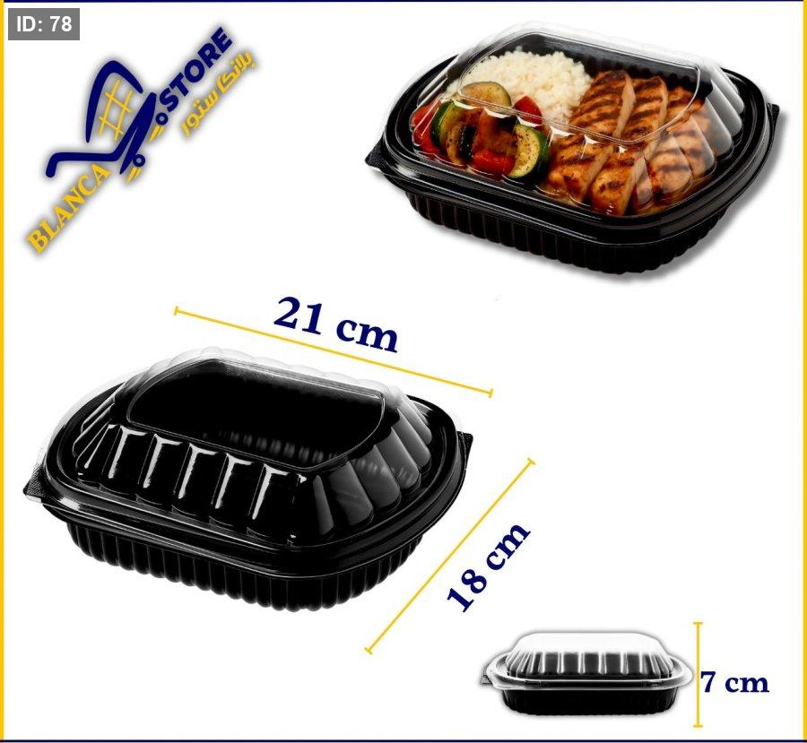 مصنوعة من البلاستيك، تستخدم بشكل شائع في المطاعم والمقاهي لتقديم الوجبات الساخنة أو الباردة، مثل الدجاج المشوي أو السلطات، وتتميز بغطاء محكم الإغلاق للمحافظة على المحتويات